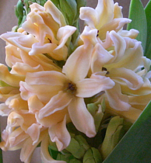 冷蔵処理しておいたヒヤシンス、 『オデッセイ』が開花です。 9/19植え付け→冷蔵庫 11/20 冷蔵庫から取り出し 1/22より開花。 うーん、微妙な早まり具合・・・・・ ところでパッケージ写真と大分色が違います。 パケ写真では鮮やかなオレンジ色だったのですが、 実際はアプリコット~ピンク~オレンジな曖昧カラー。 そして香りがいい~♪ 朝、部屋に入るとふわ~っと甘い香り。 まだ蕾が開ききっていない部分もあるので、当分楽しめそうです。