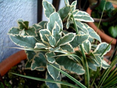 はっきりした白斑に、ブルーグレーの葉がツボ!