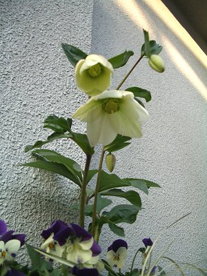 そして先日開花したクリスマスローズの鉢を一等席に移動して、和風コーナーの完成。