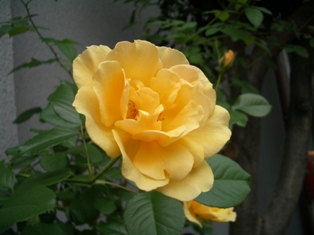 ハークネスローズらしい丸い照り葉は強健で、我が家では無病の女王様です。
