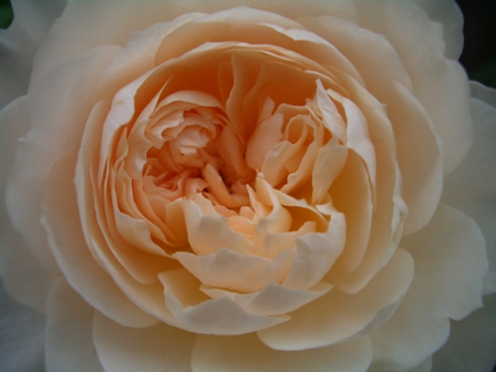 ペルルドールが、秋晴れの中こんな濃いアプリコットで咲きました。