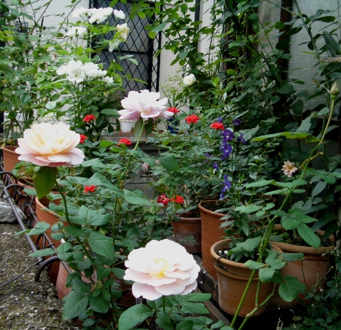南面のシェルフに乗っかっていたバラはみんな東に移動!