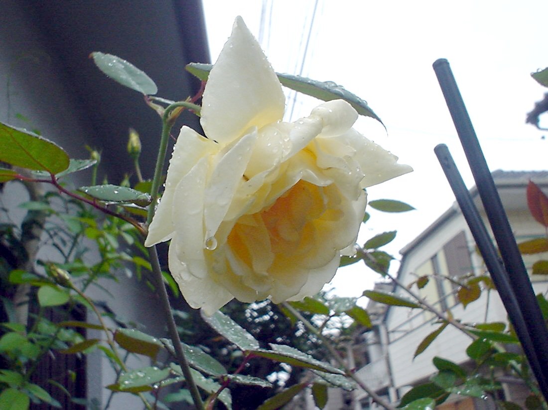 鉢植えのバラは軒下に避難しましたが、ダメージは避けられなそうです。