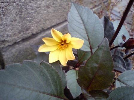 大好きな黒葉ダリア、ブラックナイトが開花しました。 ダリア ブラックナイト Dahlia ‘Black Night‘ キク科ダリア属 中南米原産 H100cm×W70cm 花期5月~10月 耐寒性:中 耐暑性:中 球根植物 開花前の小苗を、先月購入して寄せ植えにしておいたものです。 花を見ないで植えたので、ちょっとドキドキでした・・・・・ 想像していたよりも黄色かったけれど、透けるような花びらにうっとりです。 まだつぼみがたくさんあるので咲きそろった時が楽しみ。 花後は冬越しに挑戦してみたいと思います。