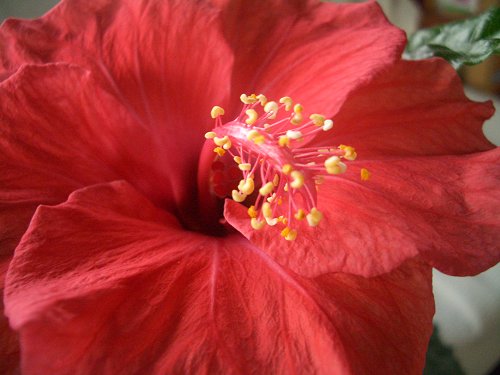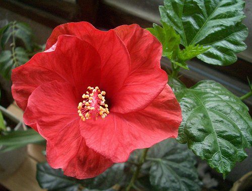 室内越冬中(もう春だけど)のハイビスカスが咲きました。