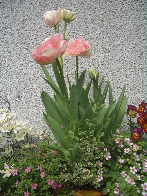 鉢が浅かったため水の多寡が出て、チューリップの丈が揃わなかったのが失敗。
