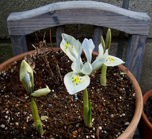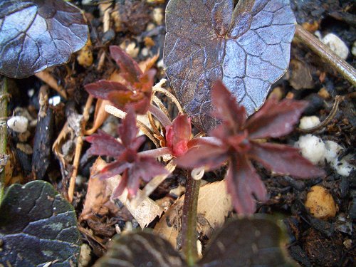 何度も鉢ごと凍り付いても耐えました。新芽も噴き始めてホッと一息。